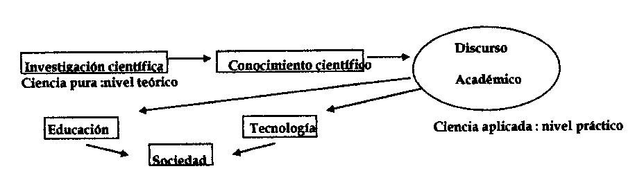 Este cuadro colabora a una tentativa ubicación del DA y su importancia, a través del siguiente gráfico que toma de referencia el de Díaz y Heler (1999 :15). Esquema en el que el DA es un espacio de transición que postula que toda producción científica no tiene necesariamente que ser materia prima de la tecnología ni la educación pero si lo intenta, no puede acceder a estos espacios sin haber sido DA de alguna forma.